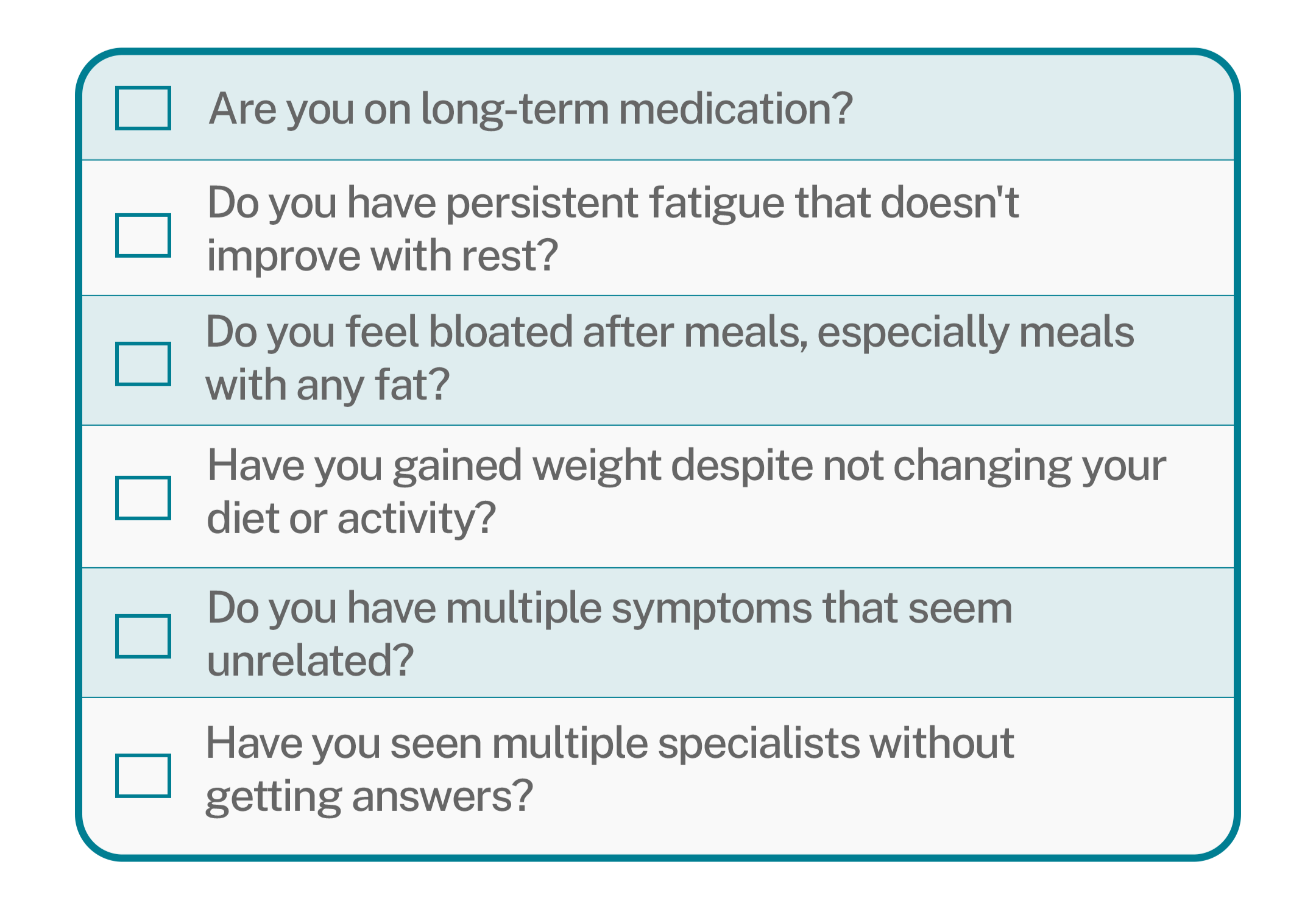 Question 5: Do you have multiple symptoms that seem unrelated?