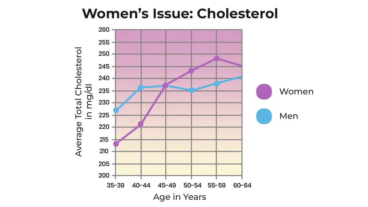 During this period, the relationship is reversed and cholesterol levels in women increase significantly.