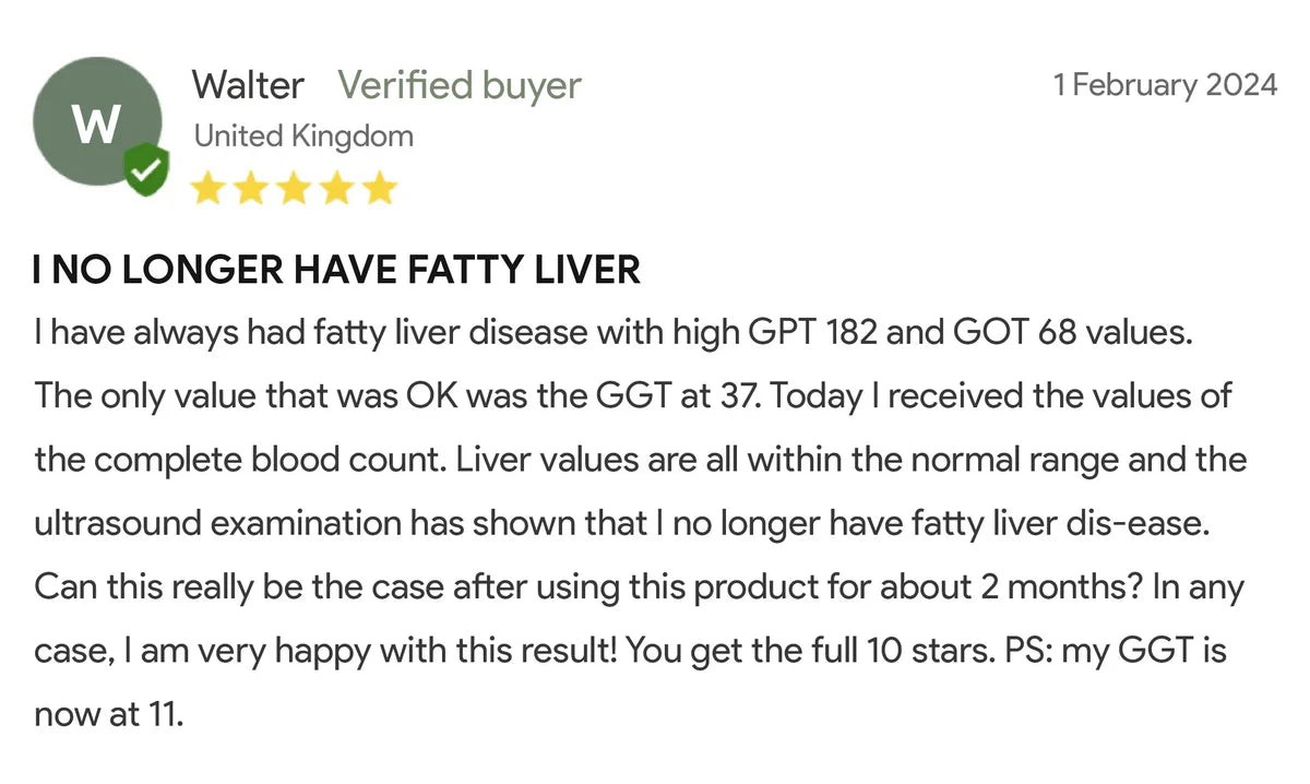 The result: a healthy liver and better cholesterol, AST, ALT and gamma-GT levels.